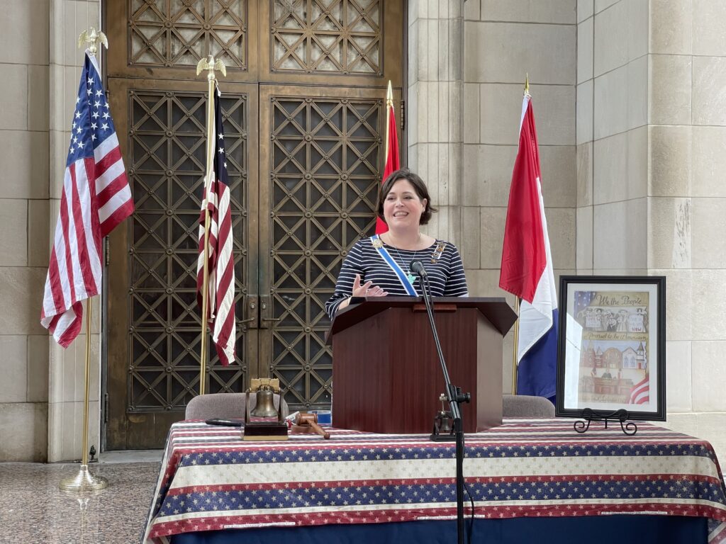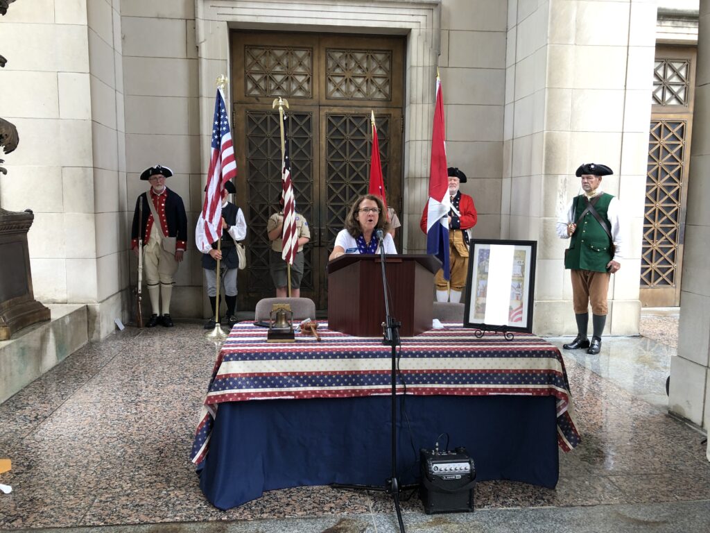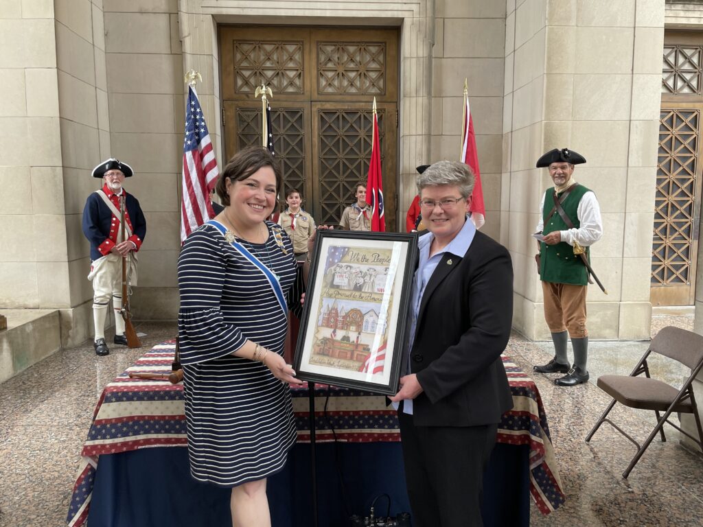 This year we were pleased to be able to bring back our Capitol Bell Ringing event in Nashville. Although the location was changed to the War Memorial Plaza Courtyard to accommodate ongoing construction on the Capitol grounds, the new location provided much needed cover from the rain. A memorial built in 1925 to honor our Tennesseans who had served in WWI, the building was added to the National Register of Historic Places in 2017 and was a wonderful reminder of the Tennesseans that gave their lives in recent history to continue to uphold our constitutional way of life.