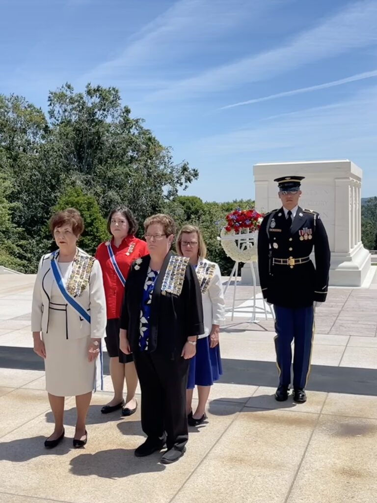 Our bus group and all Tennessee Daughters had a very special opportunity on Tuesday, as State Regent Cecile Wimberley, Vice President Charlotte Reynolds, 2nd Vice Regent Nannette Feeback, and Historian Felicia Hix participated in a wreath laying ceremony at the Tomb of the Unknown Soldier at Arlington National Cemetery.