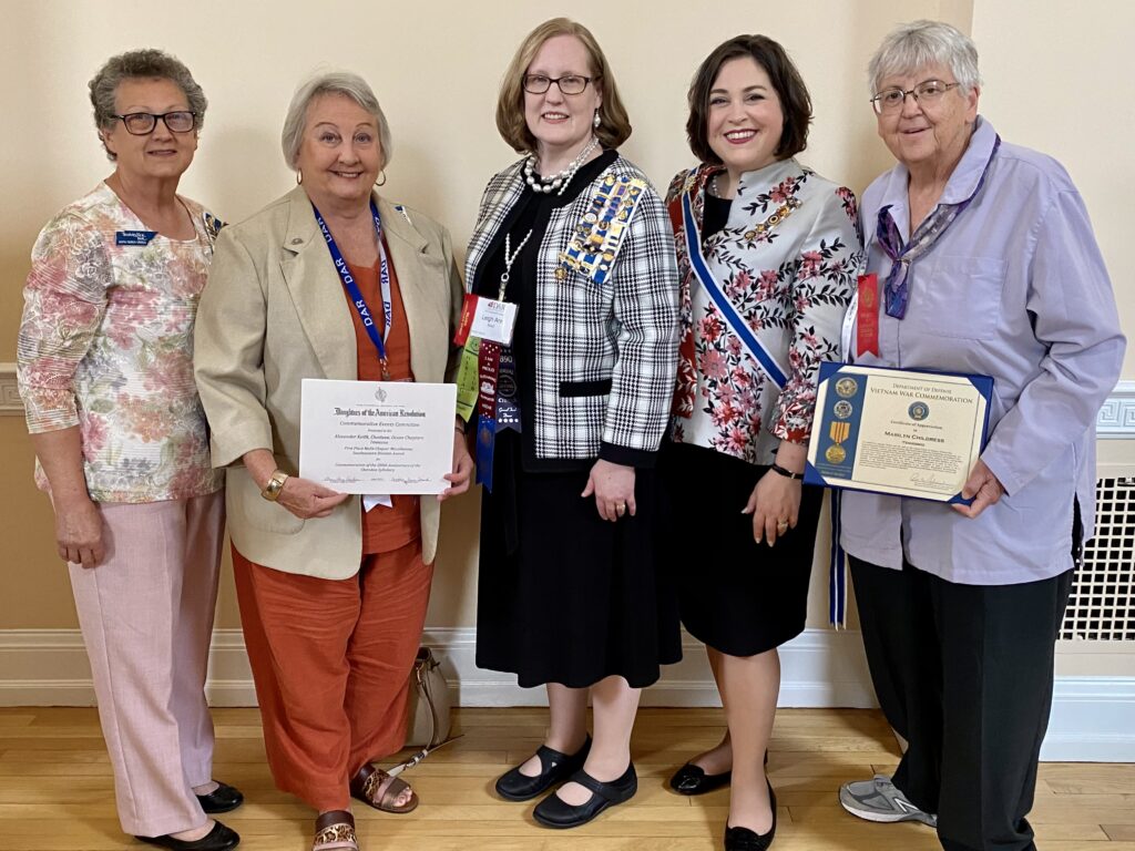The Commemorative Events Committee Awards Presentation showcased Tennessee Daughters and Chapters. Marilyn Childress, Cavett Station Chapter, was honored as the Vietnam Veterans Outstanding Tennessee DAR Member. The Ocoee, Chestuee, and Alexander Keith Chapters were awarded First Place for a Multi-Chapter Event in the Southeastern Division, and representatives of each chapter attended.