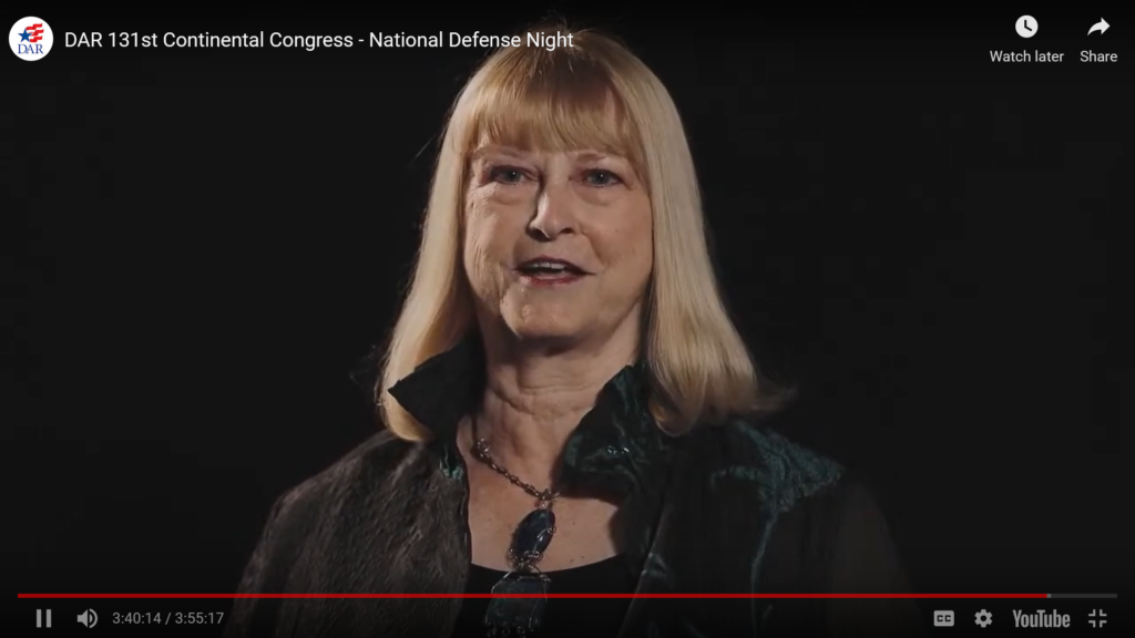 Saturday evening was one of the most beloved events of the week – National Defense night. In addition to wonderful award recipients, our own Jackie Utley was honored as the National Outstanding DAR Service for Veterans Award winner.