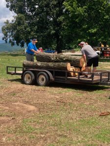 In May, 2023, I had the opportunity to participate in the groundbreaking ceremony at Kate Duncan Smith DAR School in Grant, Alabama, for their Centennial Celebration Project. Part of that project involved taking down several large hickory trees from the campus. TSDAR State Treasurer and KDS graduate Helen Moore decided it would be a shame to waste those trees which had stood for so many years. Along with her husband Marty, Mrs. Moore coordinated bringing the trees to Tennessee, having them sawed into lumber, and the lumber dried at a local kiln.