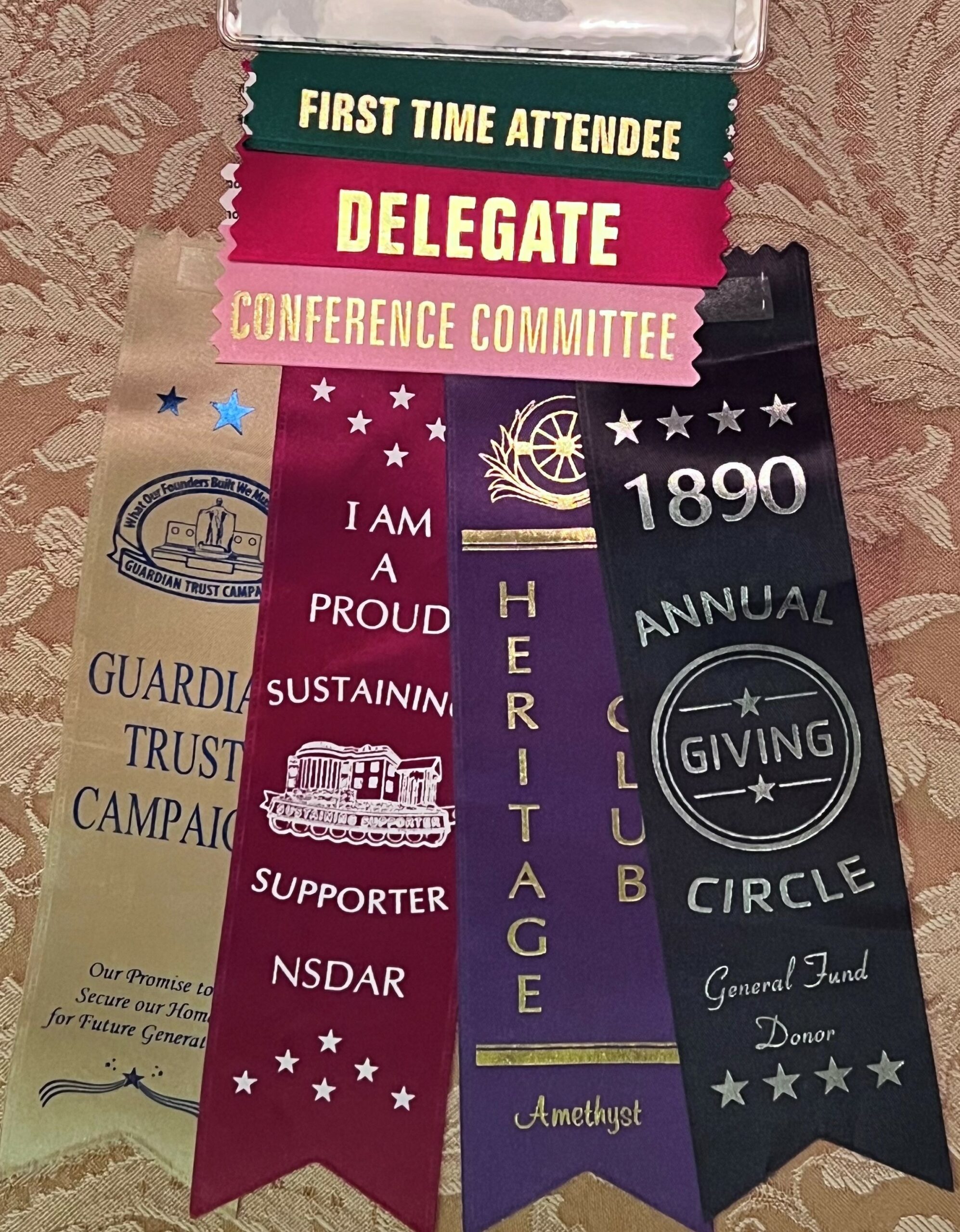 Your registration packet will contain ribbons for you to attach to your name tag. These ribbons will help you spot first time attendees (green), State Conference Committee members (pink), delegates (red) and several other groups.
